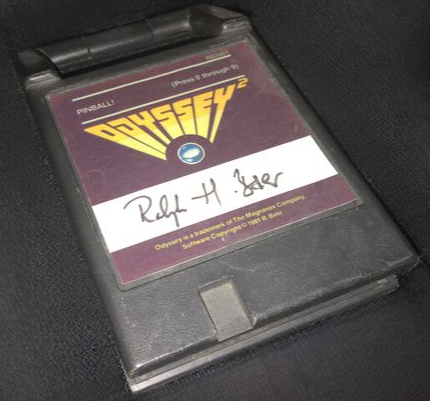 Cartucho do jogo de Pinball desenvolvido pela Sanders para o Odyssey2 e nunca lançado oficialmente. Essa é uma das 21 cópias assinadas por Ralph Baer. Foto National Videogame Museum. Foto divulgação
